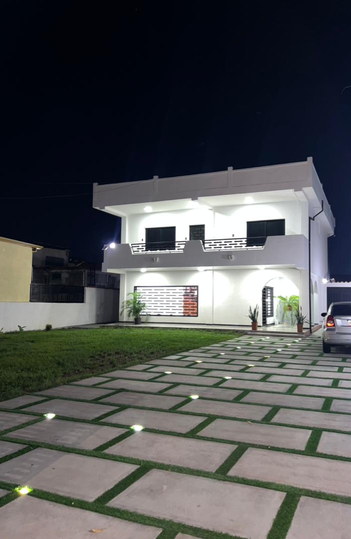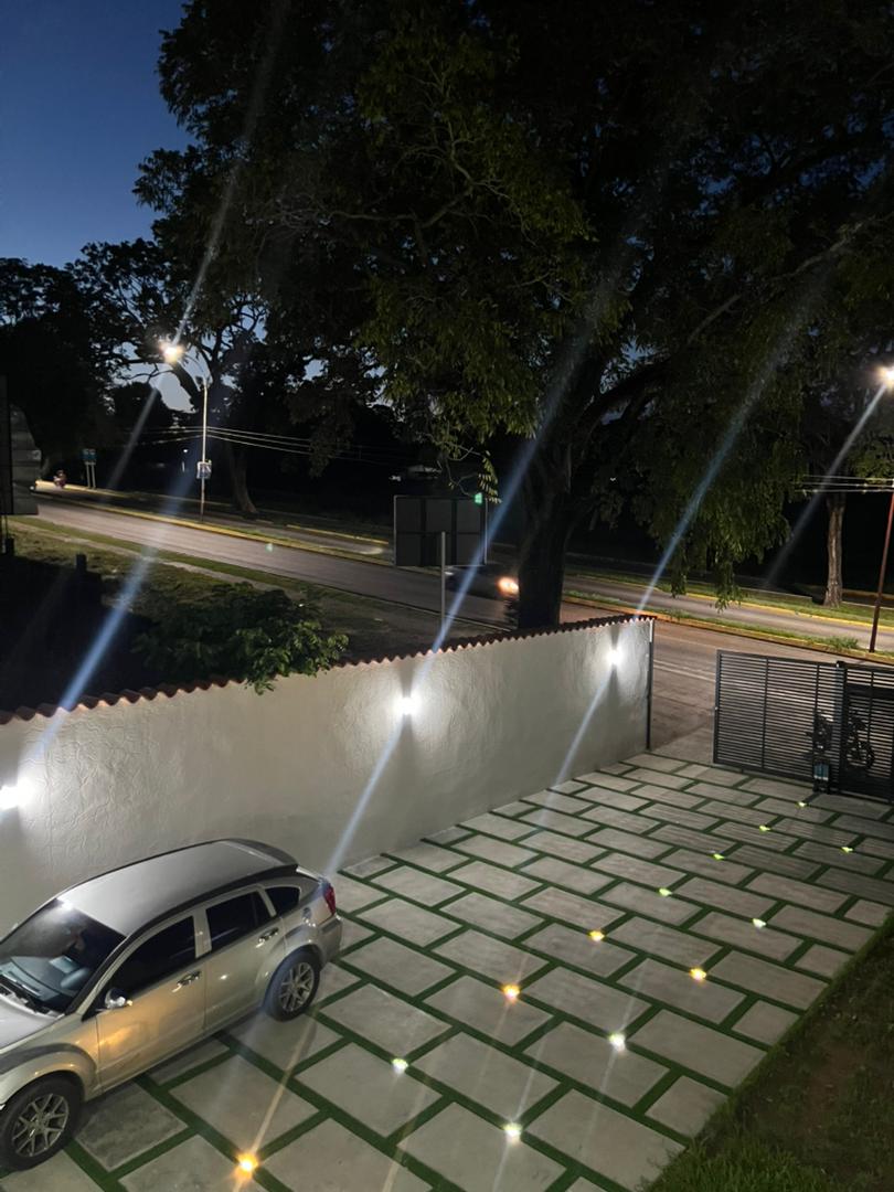 🛣️ Entrada (Portón Eléctrico, Piso con Luces Decorativas y Áreas Verdes).